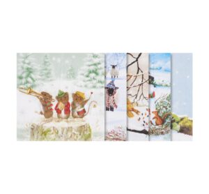 Tauche ein in die zauberhafte Winterwelt mit dem VBS Servietten – Set „“Wintertime““! Ob auf Holz, Pappe, Karton oder Stoff – mit der Serviettentechnik kannst du das Motiv ganz einfach auf zahlreiche Untergründe übertragen und so individuelle Deko- und Geschenkideen gestalten. Das Set enthält 20 Servietten mit einer jeweiligen Größe von 33 x 33 cm und ist somit ideal für deine kreativen Projekte geeignet. Die einseitige Bedruckung und die weiße Rückseite ermöglichen dir vielfältige Gestaltungsmöglichkeiten. Ob als Tischdeko, auf Kerzen, Bilderrahmen oder Schachteln – mit der Serviettentechnik kannst du einzigartige Unikate erschaffen. Die Motive sind in viertel Motiv aufgeteilt und zeigen verschiedene Tiere wie Hasen, Schafe, Mäuse und Eule in einer winterlichen Landschaft und zaubern eine gemütliche Atmosphäre in dein Zuhause. Also lass dich von der winterlichen Stimmung verzaubern und gestalte mit dem VBS Servietten – Set „“Wintertime““ deine eigenen kleinen Kunstwerke! Motiveinteilung viertel Motiv Anzahl Motive: 5 Inhalt: 20 Stück Länge: 33 cm Breite: 33 cm Material: Papier