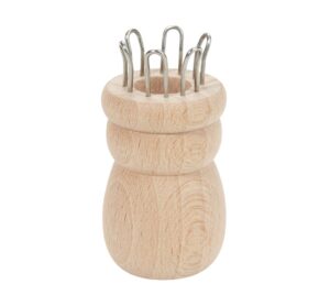Strickliesel mit Natur-Holzgriff, Anzahl Maschen: 6-maschig, Höhe ca. 6,5 cm. Nicht nur für Wolle geeignet sondern auch zum Häkeln von Perlonfäden oder Kupferlackdrähten (z.B. für Schmuckketten). Bitte benutzen Sie zum Maschenheben eine Häkelnadel. Die Maschenanzahl einer Strickliesel bestimmt die Dicke des entstehenden Schlauchs: je mehr Maschenhaken die Stricklieselkrone aufweist, desto dickere Schläuche entstehen. Höhe: 6.5 cm Material: Holz