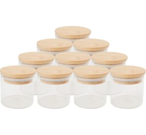 Das schöne Set aus 10 Vorratsgläsern „“Bini““ mit Bambusdeckel ist eine VBS Großpackung. Diese Vorratsgläser eignen sich hervorragend für die Aufbewahrung von Kleinigkeiten. Die Gläser haben eine Füllmenge von ca. 150 ml. Die Deckel sind mit einer Gummidichtung ausgestattet, wodurch ein sicheres Verschließen möglich ist. Der Außen-Ø beträgt ca. 6,5 cm und die Höhe ist ebenfalls 6,5 cm. Perfekt geeignet für eine weitere Gestaltung und Dekoration. Bemalen Sie die Gläser mit Glasmalfarbe und Window Color oder bekleben Sie sie mit Servietten, Strohseide oder Décopatch-Papier. Auch das Belegen mit Blattgold ist möglich. Ein neuer Trend ist die Gestaltung mit einem Glasgravier-Stift, so wird jedes einzelne Glas zu einem Einzelstück. Füllmenge: 150 ml Inhalt: 10 Stück Durchmesser (außen): 6.5 cm Höhe: 6.5 cm Material: Bambus, Glas