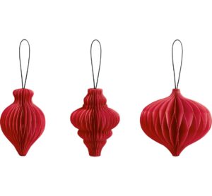 Das schicke Waben-Tropfen-Set beinhaltet 3 Tropfen zum Aufhängen in drei unterschiedlichen Tropfen-Formen. Die Tropfen haben eine Höhe von ca. 10 cm mit einem Papiergewicht von ca. 120 g/m². Diese schönen Tropfen lassen sich ganz einfach öffnen und werden mit den enthaltenen goldenen Klammern verschlossen. Verwenden Sie die Topfen zum Dekorieren von Zweigen, Geschenkverpackungen, Deko-Schalen oder als Tannenbaumschmuck. Klasse in Kombination mit weiteren Waben-Dekorationen. Grammatur: 120 g/m² Inhalt: 3 Stück Material: Papier