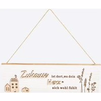 Dieses Schild mit Schriftzug aus MDF ist die perfekte Wand- und Hängedeko für Ihr Zuhause. Mit verschiedenen Sprüchen und einer Größe von ca. 30x1x10cm fügt es sich harmonisch in jede Einrichtung ein. Der praktische Jute-Aufhänger erleichtert die Anbringung. Schild mit verschiedenen Sprüchen Größe: ca. 30x1x10cm Hergestellt aus MDF Inklusive Jute-Aufhänger Perfekt als Wand- und Hängedeko